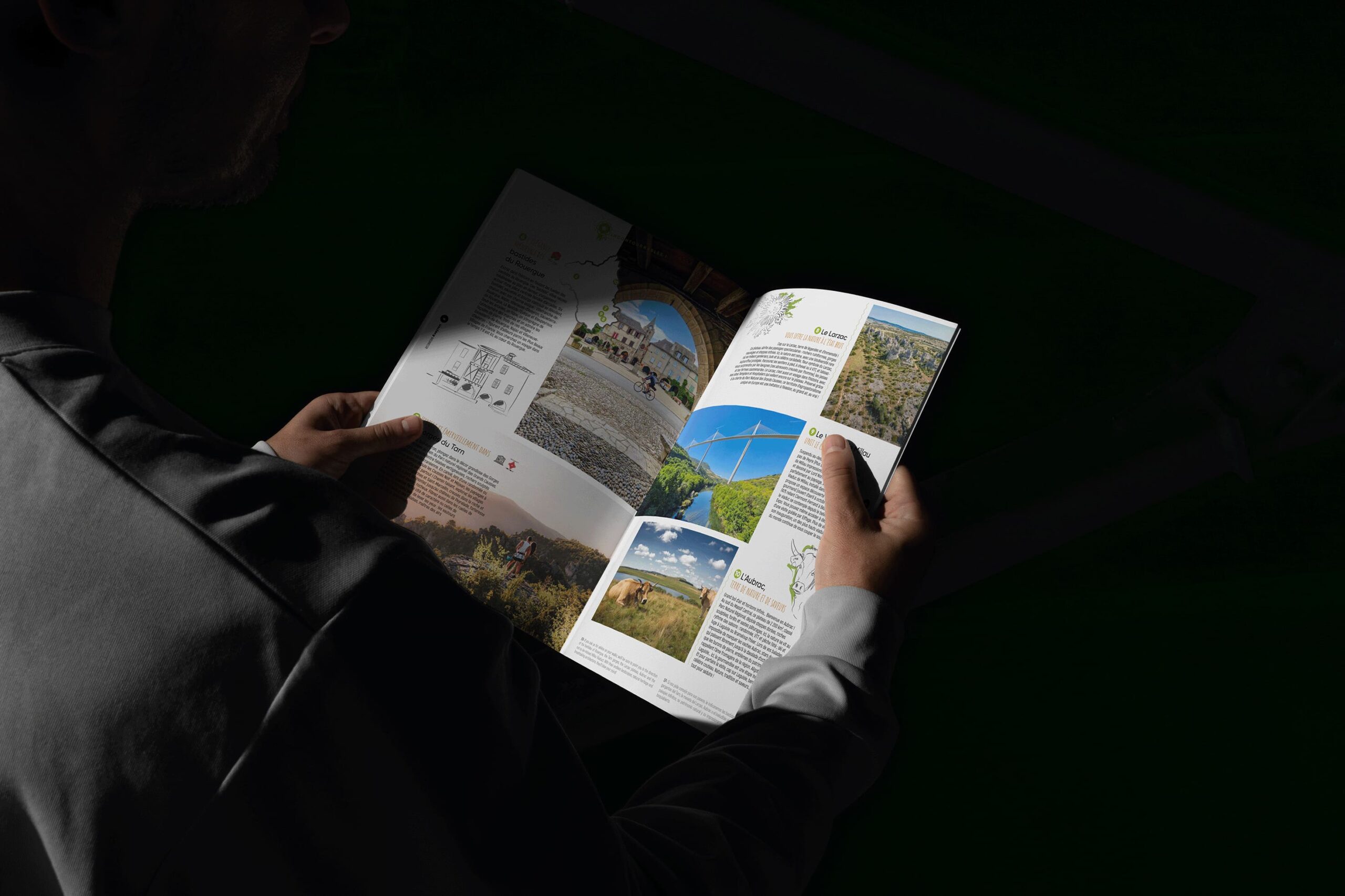 Nous leur avons soumis une ligne éditoriale claire puis suggéré un chemin de fer cohérent en pensant l’ordre des rubriques comme un voyage. Au travers de cet accompagnement dans la conception stratégique du magazine, nous avons voulu raconter le territoire avec sincérité, valoriser ses atouts toute l’année et sortir des poncifs touristiques. Une partie du magazine est d’ailleurs dédiée à l’attractivité résidentielle, pour inciter à s’y installer. Ainsi, chaque page s’inscrit dans une démarche de séduction authentique, qui donne envie de vivre l’expérience Aveyron, pas seulement de le visiter.