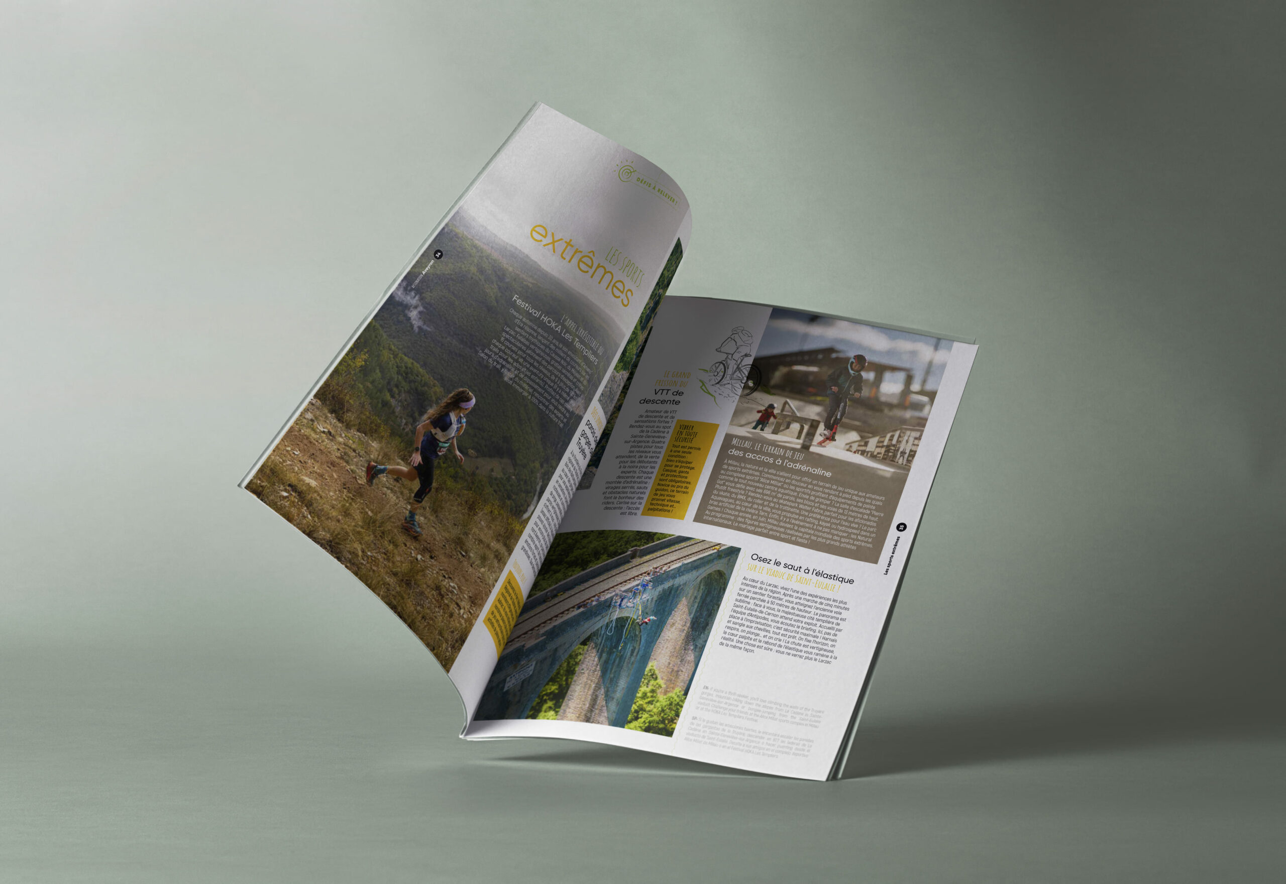 Entre nature, grands paysages, patrimoine et gastronomie, l’Aveyron est un territoire qui marque les esprits et donne envie de s’y projeter. Mais comment faire rayonner cette diversité d’ambiances dans un seul support ? L’Agence Départementale de l’Attractivité et du Tourisme (ADAT) de l’Aveyron a fait appel à nous pour repenser son magazine de destination. Objectif : allier stratégie, attractivité et émotion, tout en respectant les objectifs du cahier des charges : mettre en avant les grands paysages, valoriser la nature, le patrimoine ainsi que la gastronomie et affirmer le potentiel résidentiel du territoire.