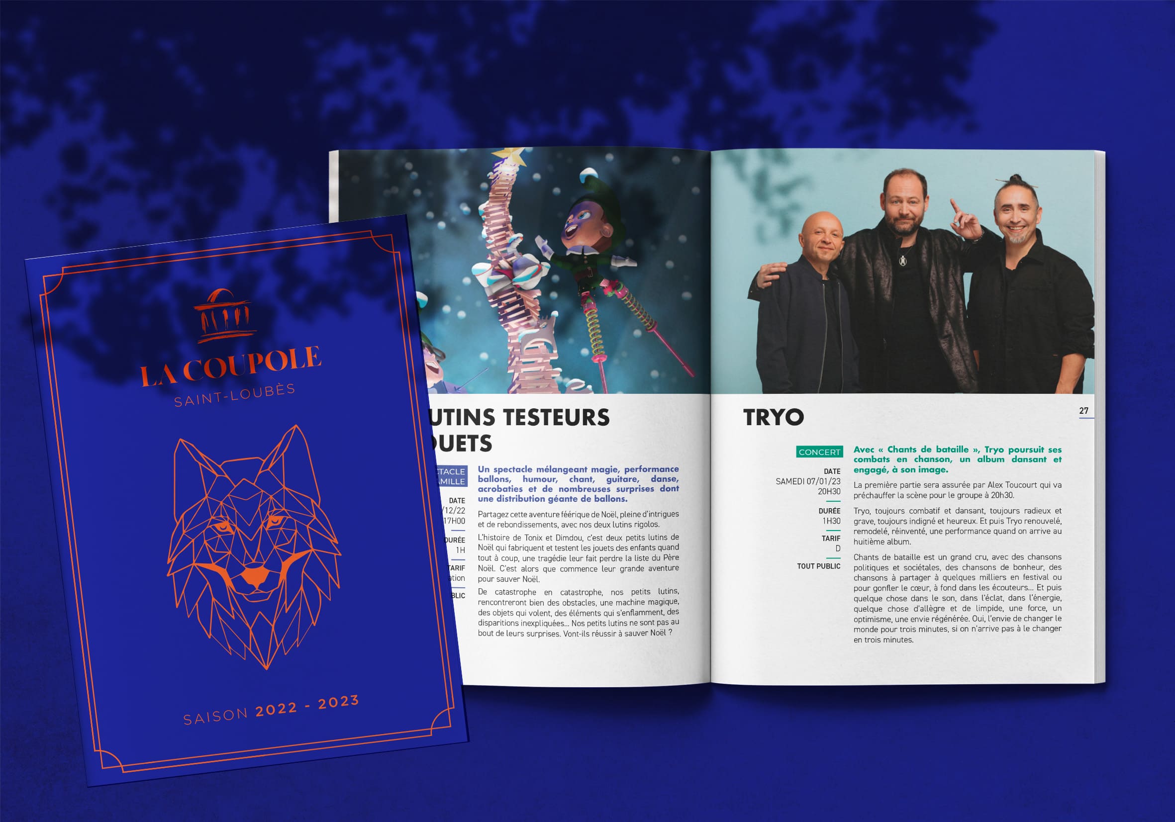 Du programme de saison aux affiches, de la signalétique à la maquette des billets : chaque support a été repensé pour coller à l’identité visuelle de La Coupole. Il fallait que La Coupole gagne en visibilité et en notoriété. Nous avons donc conçu une communication impactante, lisible et adaptable à une programmation variée. Le tout avec une charte graphique épurée, accessible, modulable selon les événements. On parle à tous les publics, sans jamais les prendre de haut.