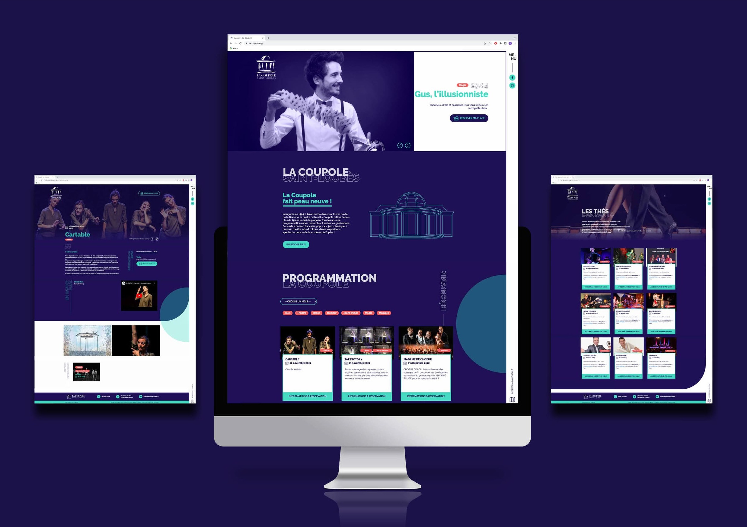 Parmi les outils digitaux de La Coupole, nous avons commencé par son socle : le site internet. En lien avec la charte graphique, nous avons revu le webdesign pour améliorer l’expérience utilisateur. Pour cela, nous avons notamment travaillé son responsive et sa lisibilité pour offrir une navigation rapide et un accès facile vers la billetterie et les infos pratiques. En parallèle, nous avons instauré une nouvelle dynamique sur les réseaux sociaux. Grâce à un échange régulier et un partage du calendrier éditorial, nous avons mis en place une stratégie destinée à animer la communauté, valoriser les artistes et renforcer la présence de La Coupole sur le territoire. Le tout avec un suivi SEO et une veille constante sur les tendances culturelles et digitales. Parce que la communication culturelle se renouvelle autant que les saisons.