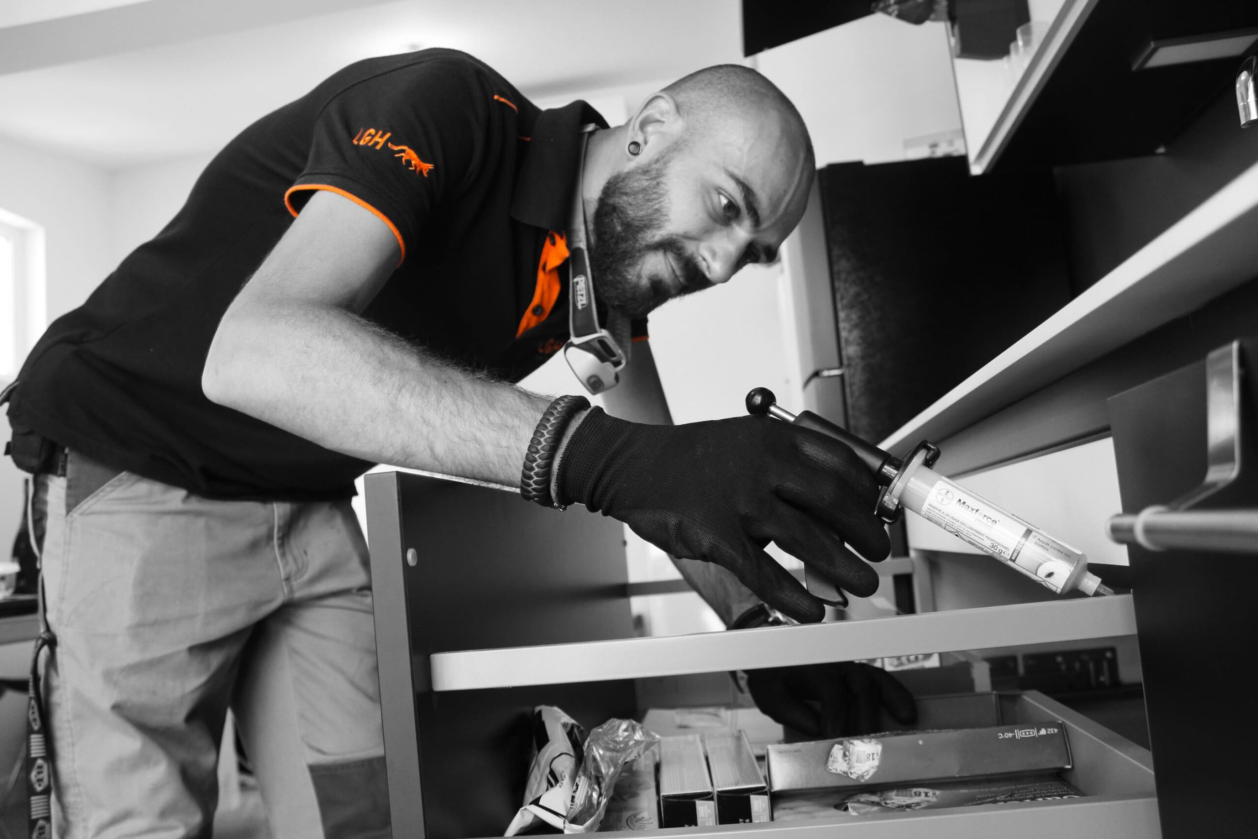 Dans le secteur de la lutte antiparasitaire, le vert et le bleu dominent. LGH voulait se différencier et nous, on voulait innover. Nous avons donc proposé un contraste orange et noir qui a du sens : il évoque l’alerte, l’action, la maîtrise. Cette identité visuelle, pensée dès le départ pour être déclinable, a été adaptée sur tous les supports essentiels : cartes de visite, tenues professionnelles, objets publicitaires. Chaque élément porte les codes de l’entreprise, avec cohérence et impact. LGH devient identifiable en un coup d’œil, en ligne comme sur le terrain.