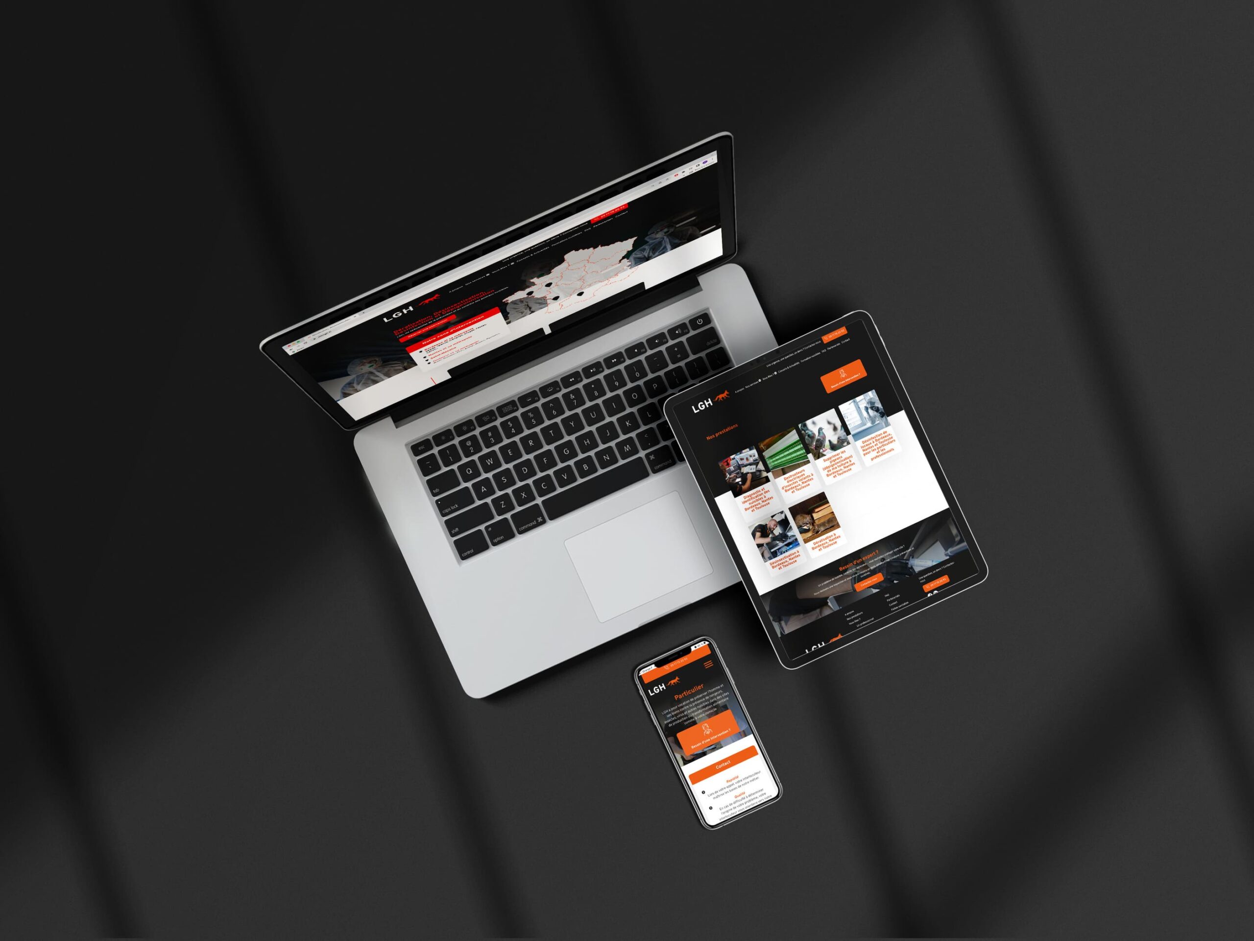 L’expertise de LGH : prévention et contrôle des animaux nuisibles. Notre expertise : animation et maîtrise de la communication. Un duo gagnant pour une communication efficace, innovante et percutante. LGH avait besoin de renforcer sa visibilité en ligne, clarifier son offre de services et structurer son identité graphique. Après analyse de son secteur d’activité, nous avons bâti une stratégie complète, du site web aux contenus éditoriaux, en passant par les supports de marque. Une collaboration en proximité, pour une communication à la hauteur du terrain.